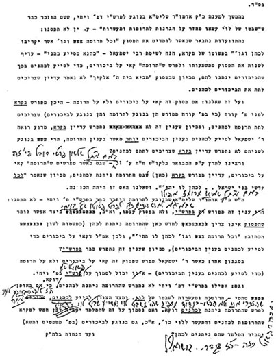 | טבשמ 'יהש קיפסמ ד"ודנב - י"שרפ אלו ינא י[ת]רכזהש רחא ןינעל עגונב ס"שה 'ל ז"ה |